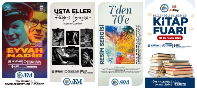 Program kapsamında ayrıca 18–26 Nisan tarihleri arasında AKM Mehmet Ali Özbaşakçı ve Yaman Civan Salonları’nda düzenlenecek Kdz. Ereğli Belediyesi Kitap Fuarı, kitapseverleri ağırlayacak.
