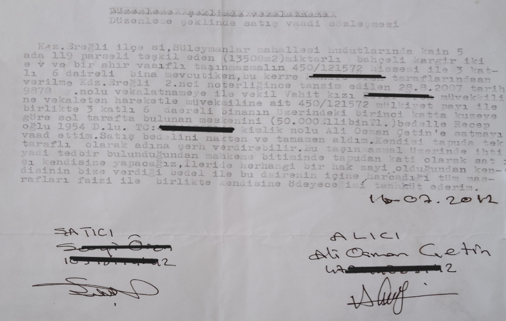 Hani aynı satış sözleşmesinde şu ifadeleri de belirtmişsiniz ya “ileride herhangi bir hak zayi olduğunda kendisinin bize verdiği bedel ile birlikte kendisine ödeyeceğimi taahhüt ederim.16.07.2012” .. İşte bu belgeler üzerinde de ifadeler üzerinde de dolandırıldık..