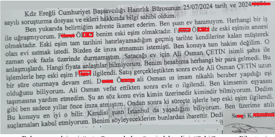ben bu insanları tanıyorum çok şaşırdım çunku hatta sevgi denen kadının mahalledeki konusmalarında biz evi geri aldık diye konusuyomus ben duyduklarımı söyluyorum istersniz mahalledeki diğer komşularlada konusulmasını saglayın demekki kocasıda bunun için ereğliyi terk etti