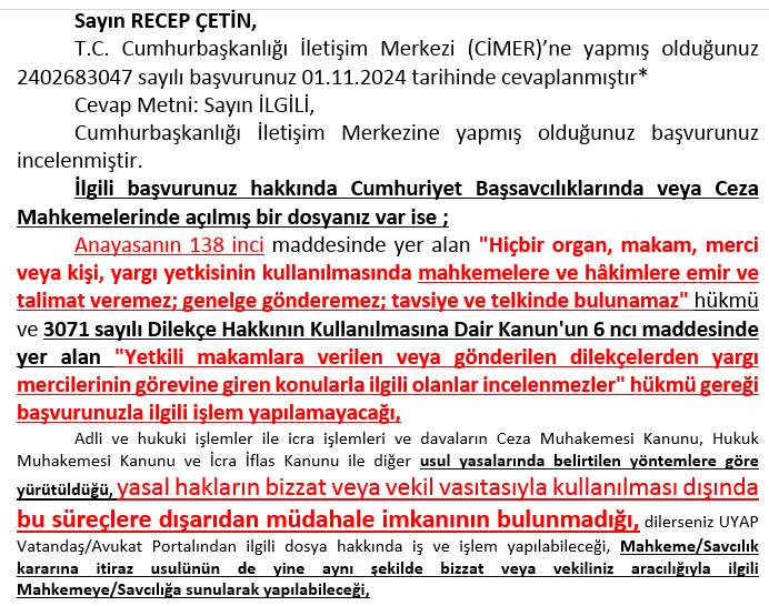CİMER’e yaptığımız şikayetimiz “şikayet ettiğimiz kurumdan, şahsımıza verilen cevap” ile (şimdilik) neticelenmiş oldu!!