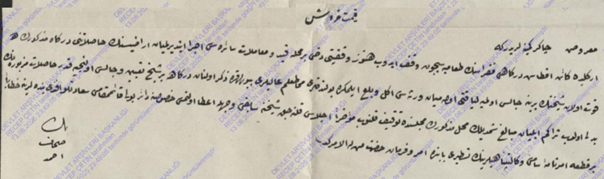 Yukarıdaki belgeye göre, AKTAŞ Tekkesi şeyhlerinden “KAYYUM ZADE ABDURRAHMAN EFENDİ” ve mahdumu-oğlu Tevfik’ten bahsedilmektedir.