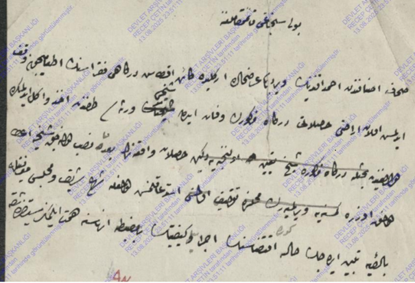 Belge özetle: “Ereğli’de sakin AKTAŞ DERGAHI fukarasının TAAMİYESİ İÇİN VAKFEDİLMİŞ olan arzi hasılatının DERGAHIN VEFAT EDEN ŞEYHİNİN VERESESİ TARAFINDAN ELE GEÇİRİLMEK istendiğinin, SAHAF ESNAFINDAN AHMED EFENDİ tarafından bildirildiğinden, gereğinin yapılmasının, Bolu Kaymakamlığına yazıldığı”