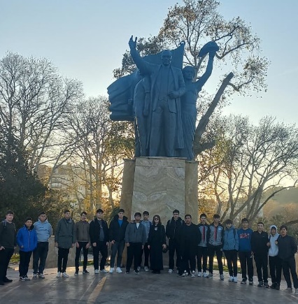 Çıktık gezi yolculuğumuza. Sabahın ilk saatinde Atatürk Heykeli önünde toplanan gençlerimize selam verdik ve hadi bismillah dedik.