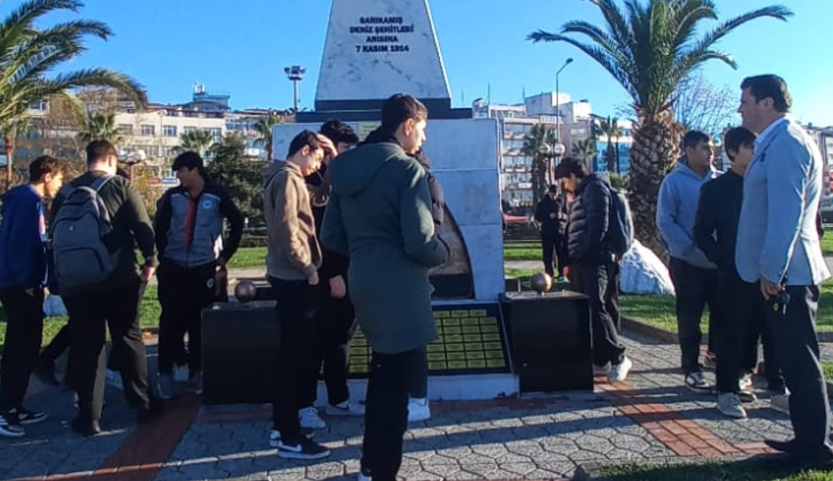 Burada yaptığımız konuşmada “Kafkametler anıtı bize göre sadece 2023 yılında Ereğli Limanında batan gemilerde vefat eden kişiler adına dikilmiş olmanın çok ötesinde, çünkü Ereğli Limanında tarih boyunca onlarca yüzlerce gemi batmış, sadece 2023 Kasım ayında 1 gemi battı ayrıca 1 gemide karaya vurmuştu. Daha önce 1939 yılında yine onlarca gemi aynı akıbeti kazayı yaşadı bu limanda ve büyük bir gemi MİLLET GEMİSİ battı bu limanda. Hani bir söz vardır ya, “KARADENİZDE GEMİN Mİ BATTI”, İŞTE BU SÖZ, BENCE ASLINDA “KARADENİZ EREĞLİ’DE GEMİN Mİ BATTI” DİYE ANLAŞILMALIDIR. “ Bu kadar acı bir tarihe sahip olan bir şehir ve liman yoktur” dedik ve Ereğli Limanında tarih boyunca batan çok sayıda kaza ve batan gemilerden bahsettik. Ve tabii ki 2023 yılında batan Kafkametler gemisinden de bahsettik ve o gemi battığında 12 kişilik mürettebatı ile batmıştı ama o günden sonra halen 7 kişisi gemiden de denizden de çıkarılamadı. Bulunamadı. Ve bizi dinleyen o gençler, “hocam Fatihalar okuyalım, dualar edelim” dediler. Okudular da..