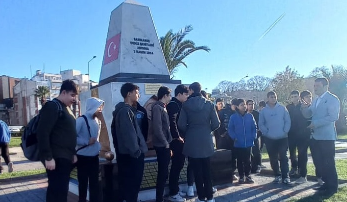 Kdz Ereğli’de “Bezm-i Âlem, Bahr-i Ahmer ve Mithat Paşa, 7 Kasım 1914’te Ruslar tarafından batırıldı. Bu gemiler KAFKAS cephesine yardım ve malzeme götürüyordu. 1. Dünya Savaşı tüm cepheleri ile azgınca devam ediyordu. Ve işte, Ruslar şehrimize kadar gelip, bizim gemilerimizin Kafkasya istikametine gitmelerini engelleyerek, bombalayıp batırmışlardı. Ve tabi Kafkasya’ya gönderilemeyen bu gemilerdeki yardımlar sonrasında cephede onbinlerce insanımızın şehid olunmasına neden olunmuştu. Bu gemiler eğer Kafkasya’ya varabilmiş olsalardı, 1. Dünya Savaşının seyri daha farklı olabilecekti. Ama olmadı ve şimdi Kdz Ereğli’de batırılan 3 gemimizde şehit edilen askerlerimizin anısını yaşatmak için dikilen bu anıtı biz de ziyaret ederek, bu tarihi bilgilerimizi canlandırmış ve geleceğimiz olan gençlerimize aktarmış olduk. Başları önlerine eğildi ama…