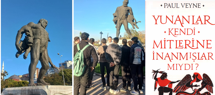 Sonra döndüm dedim ki “bakın oğlum, sizz öyle bir nesle aitsiniz ki atalarınız dedeleriniz geçilmez-aşılmaz denen o Roma surlarını geçmiş ve bu şehri fethetmiş ve Yunan mitolojisinin işte bu sahte yarı tanrı sıfatlı kahramanının nesli bile TÜRK İSLAM OSMANLI önüne çıkamamış ya da atalarımız atları üzerinde gelip bu şehri aldığında işte bu tanrılar ya yok-muş ya da yok-olmuş!”..