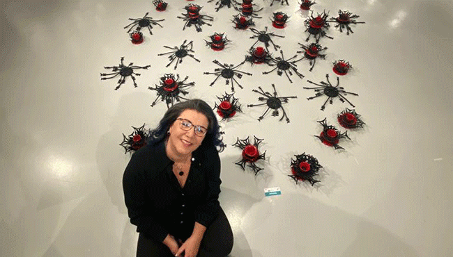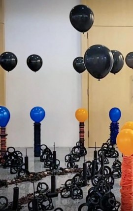 Senem Çınarbaş ise atık kauçuk malzemelerle çalıştığını ifade ederek hayata, topluma ve kadına dair söylemek istediklerini "Bir avuç ses" adlı sergide yer alan 13 eseriyle dile getirdiğini söyledi.